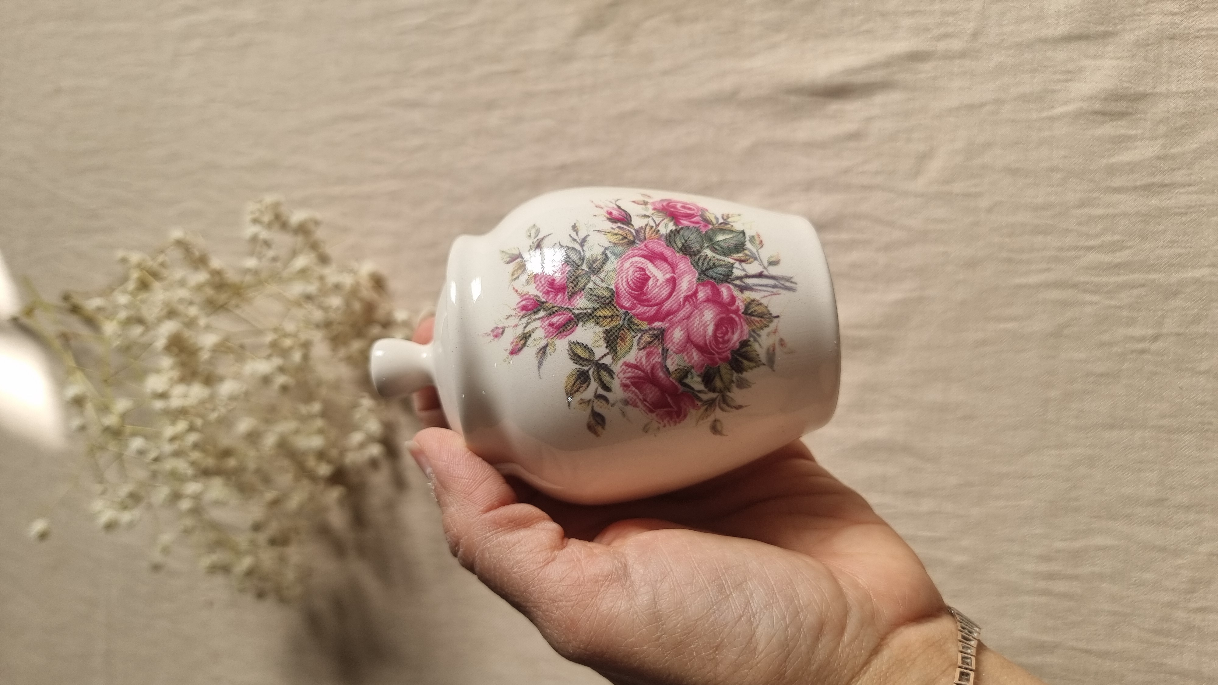 فنجان و زیر سرامیکی شکوفه صورتی دست ساز
