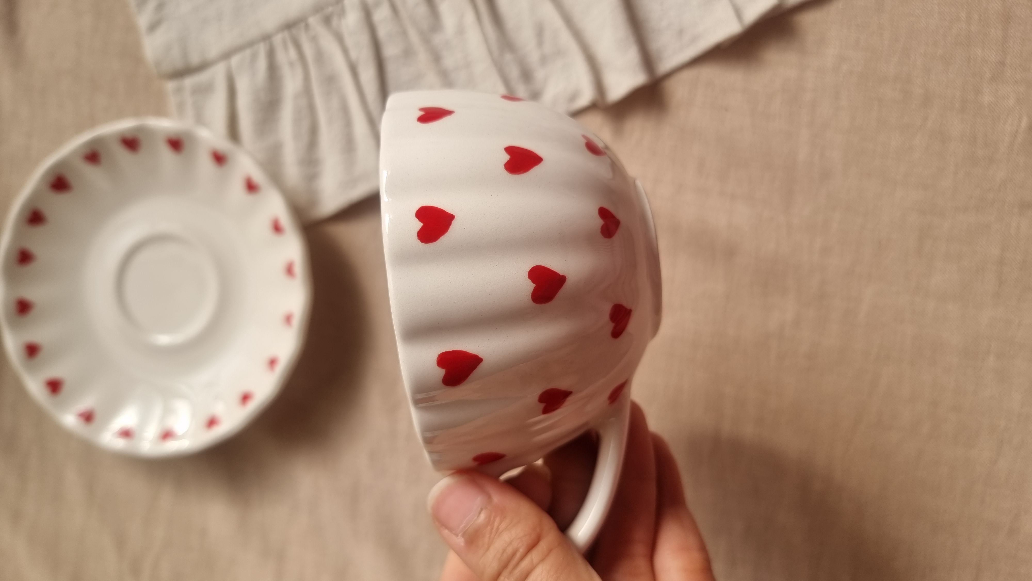 فنجان و زیر فنجان سرامیکی قلبی دست ساز