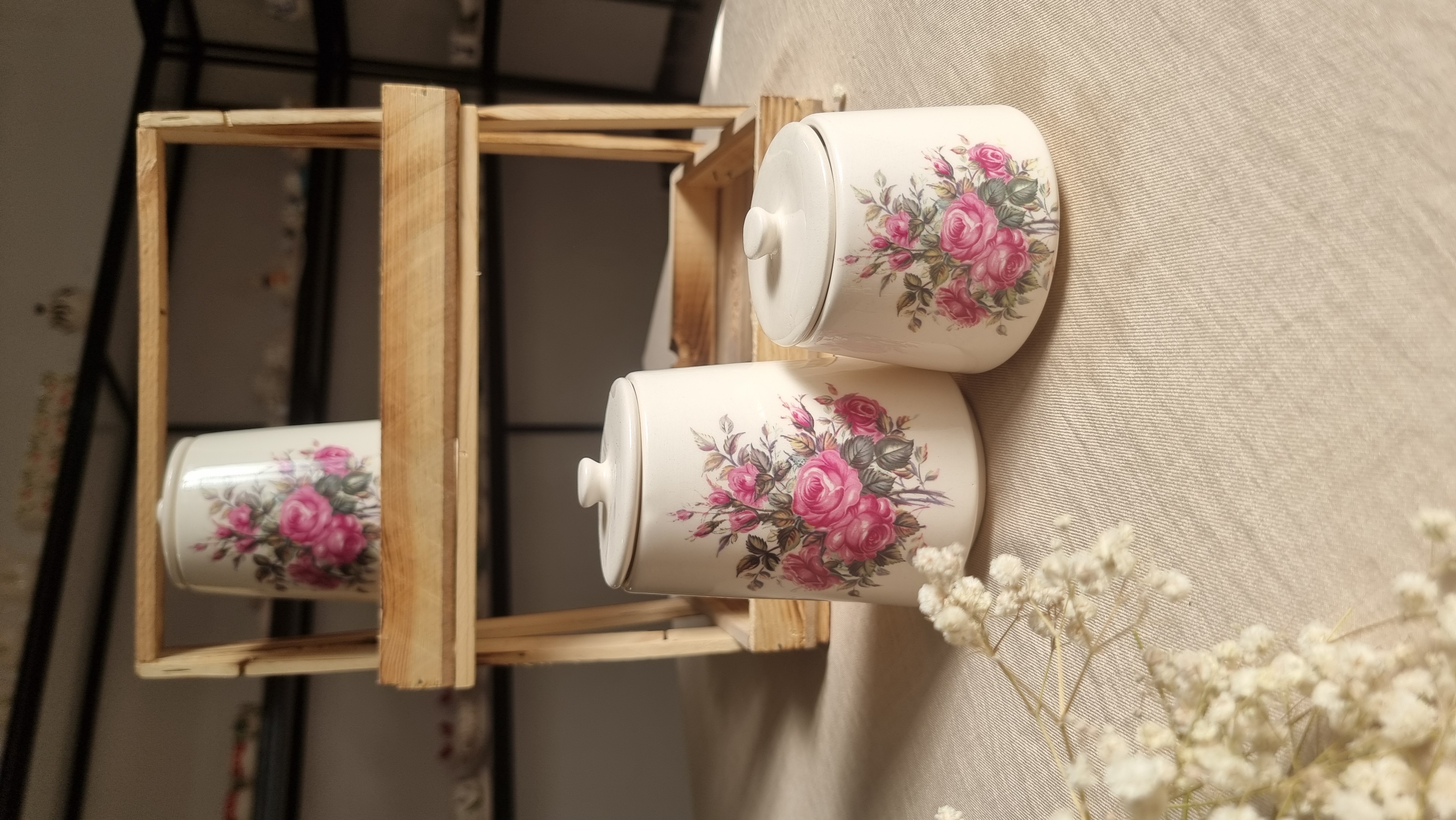 بانکه خمره ای سرامیکی گل سرخی دست ساز