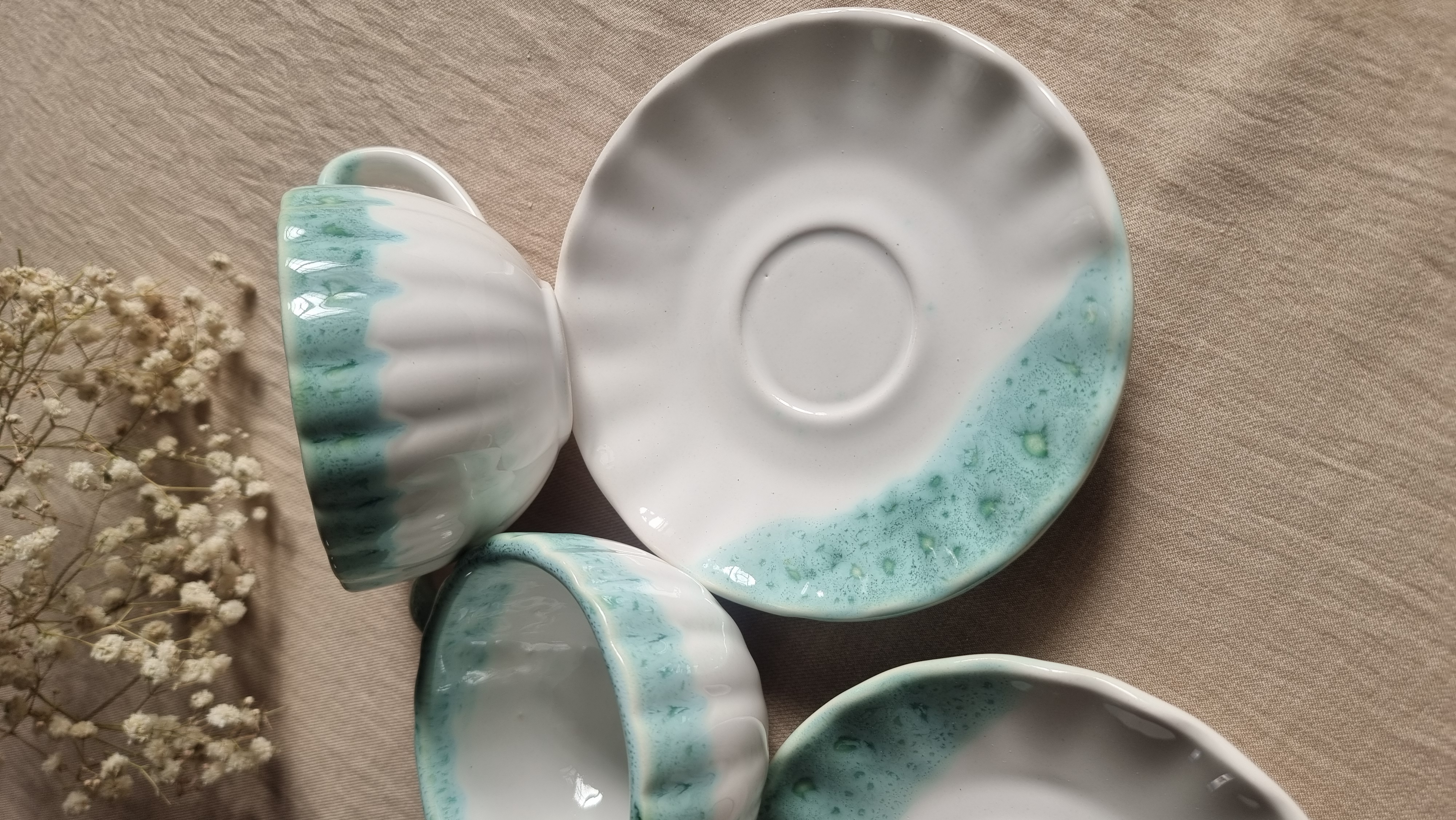 فنجان نعلبکی سرامیکی طرح دریایی دست ساز