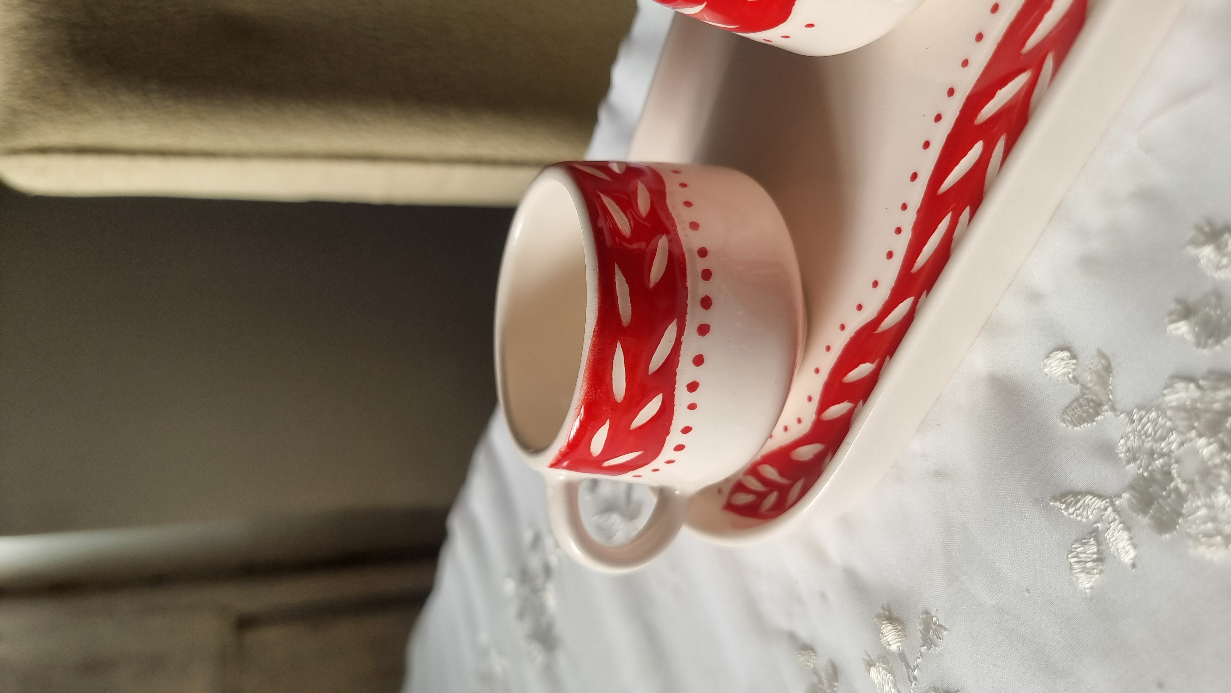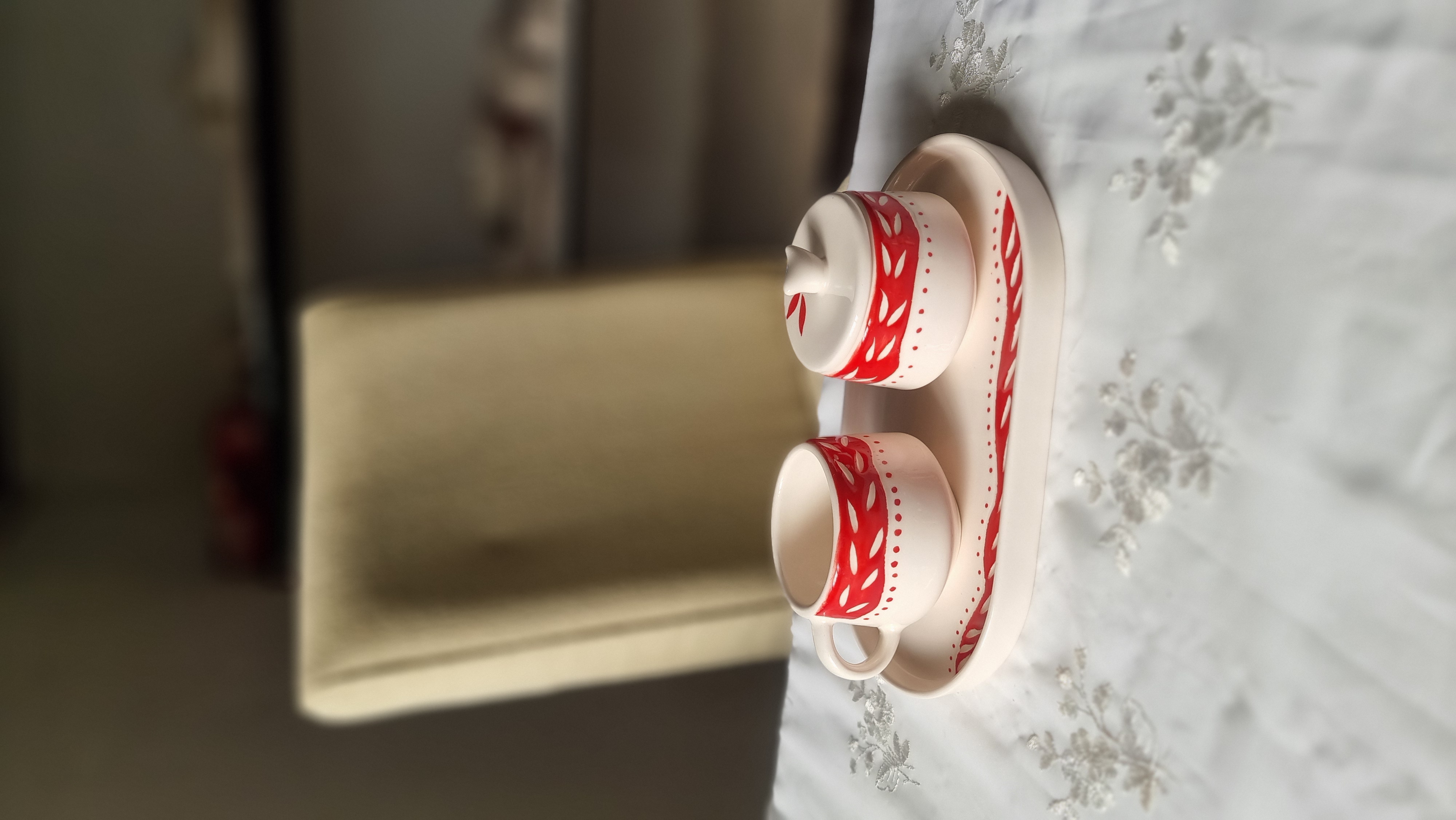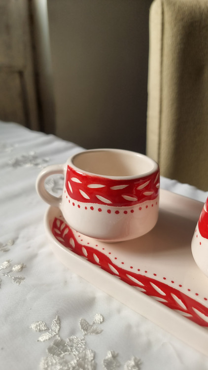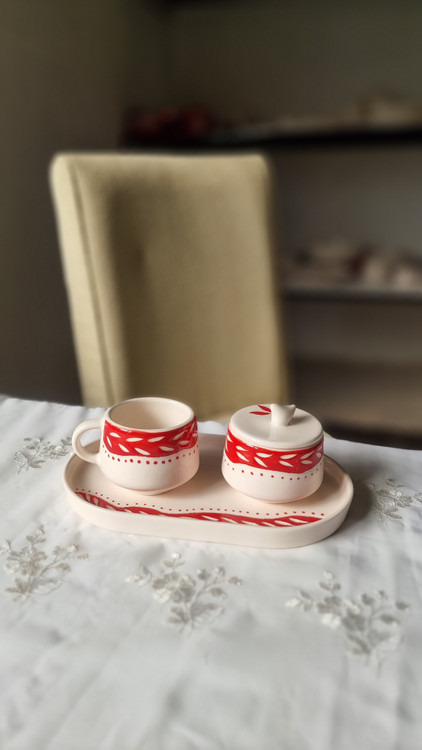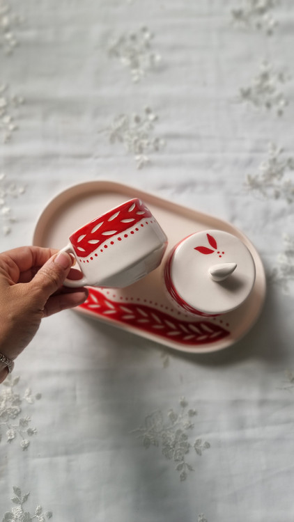 سرویس زیبای چای خوری شامل سینی فنجان وقندان