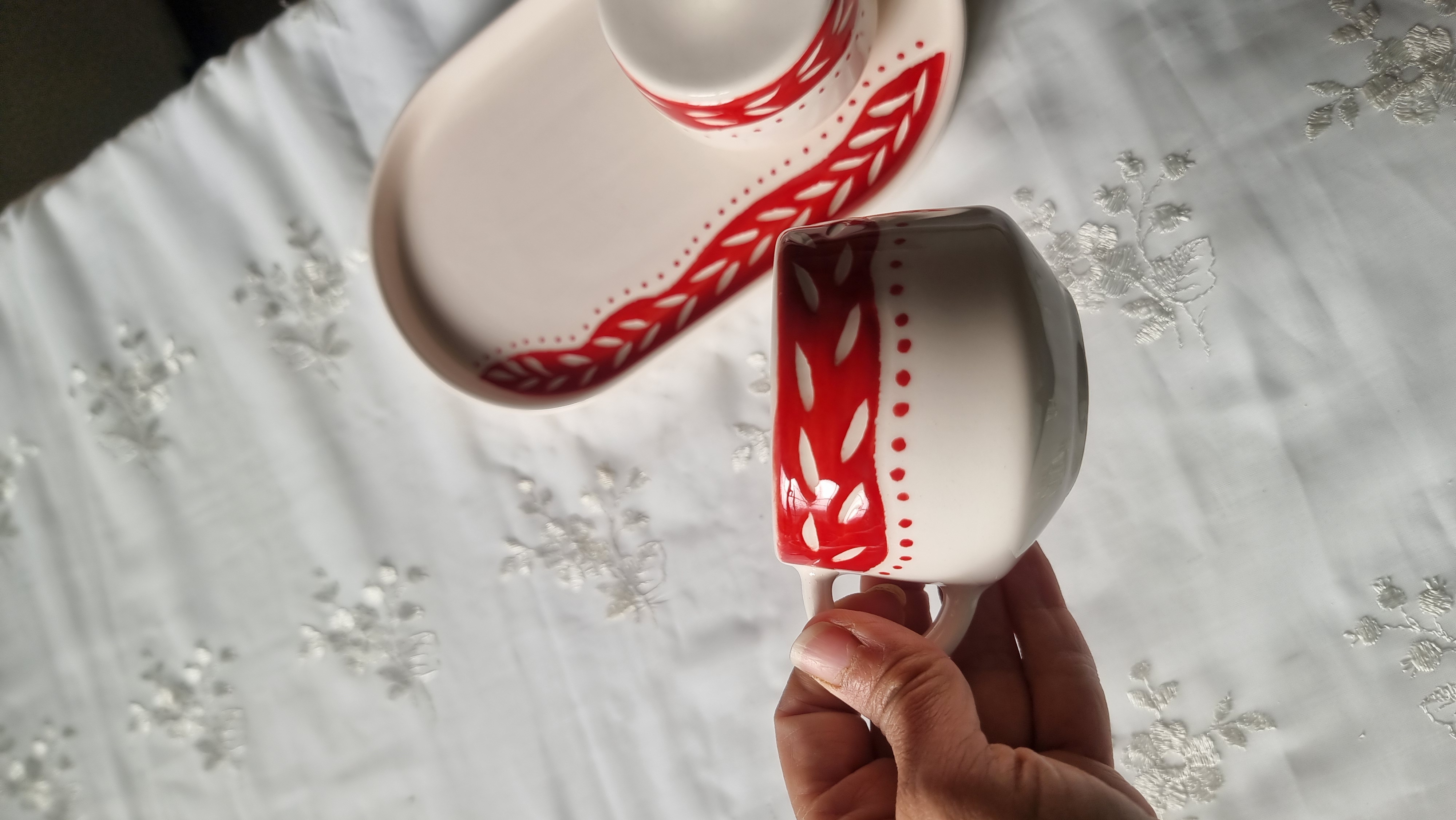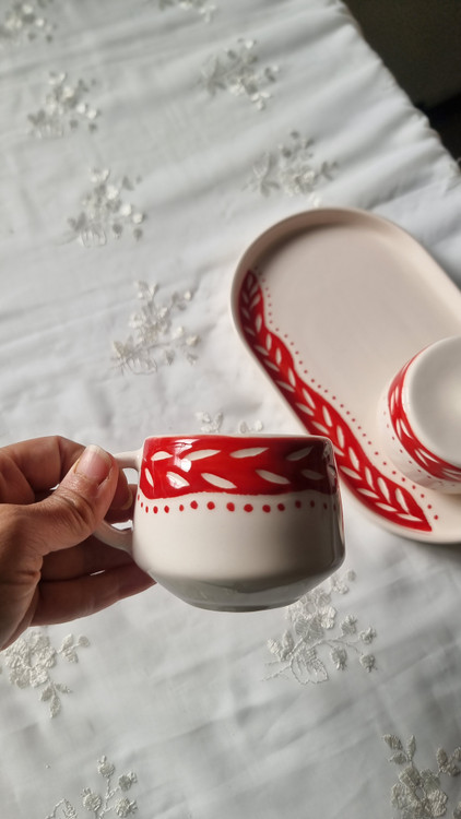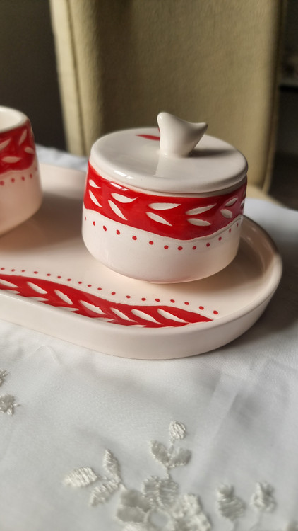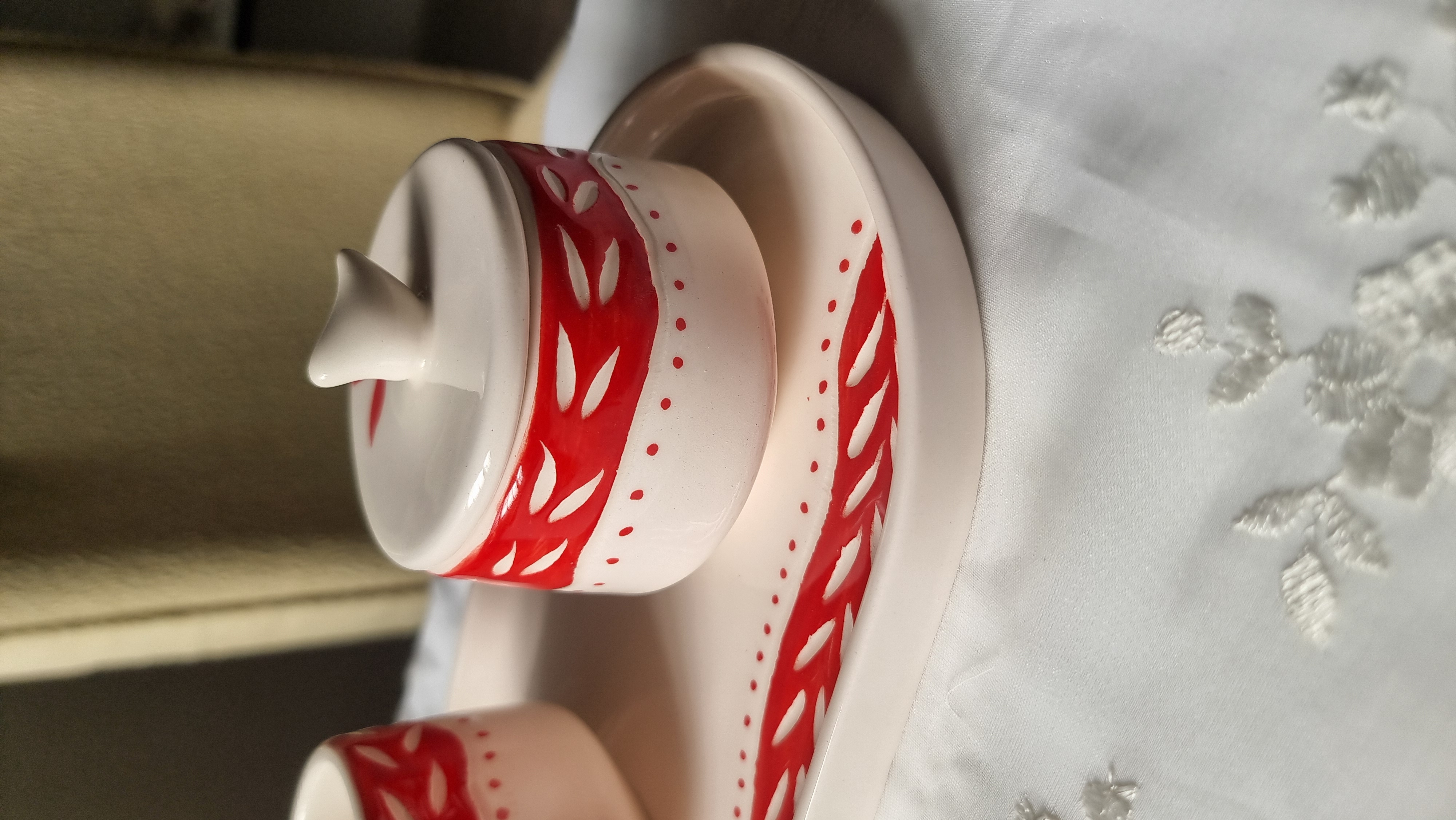 سرویس زیبای چای خوری شامل سینی فنجان وقندان