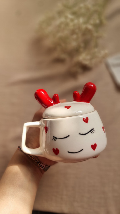 نیم ماگ درب دار سرامیکی طرح قلبی