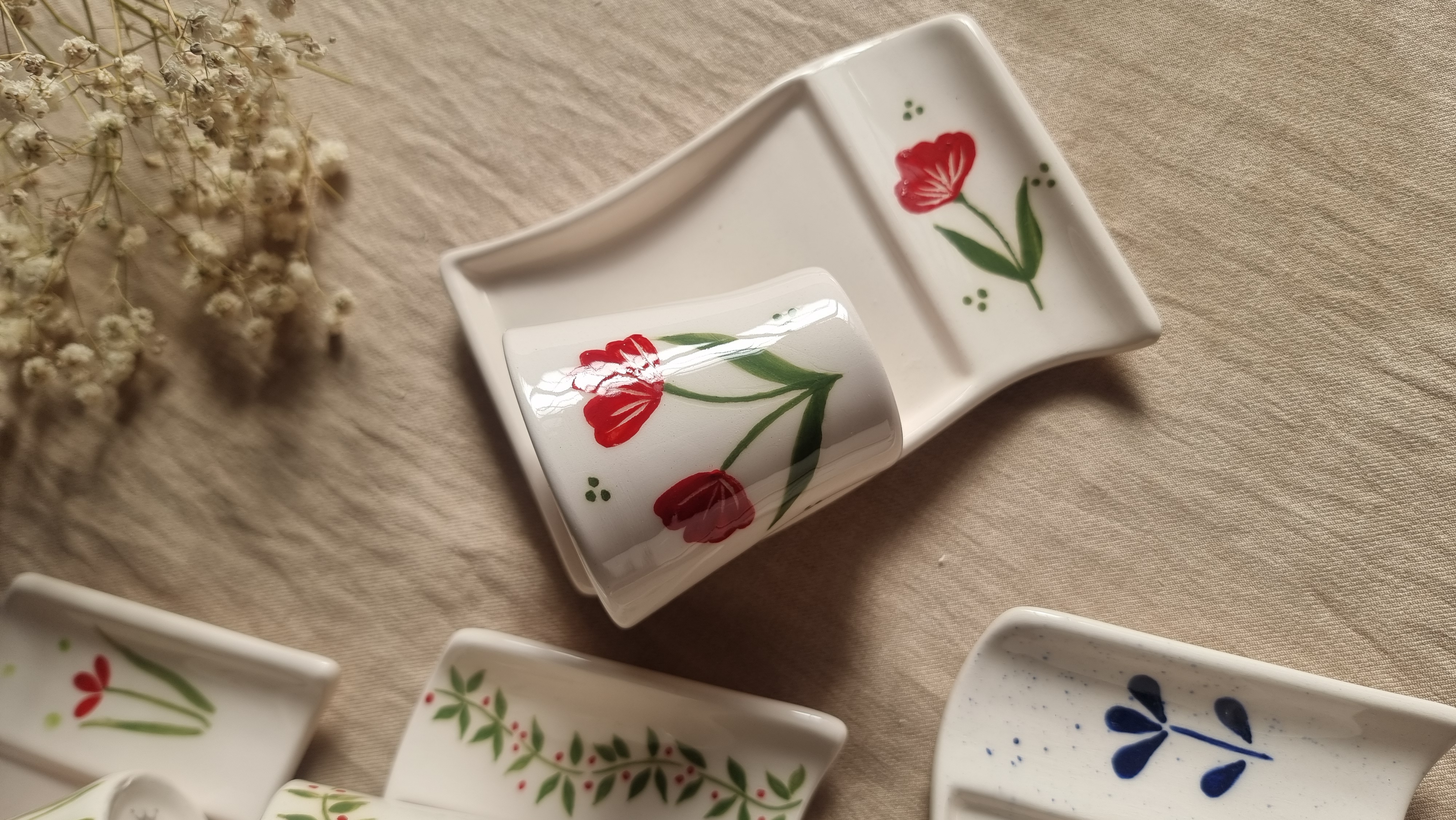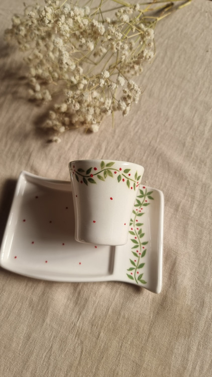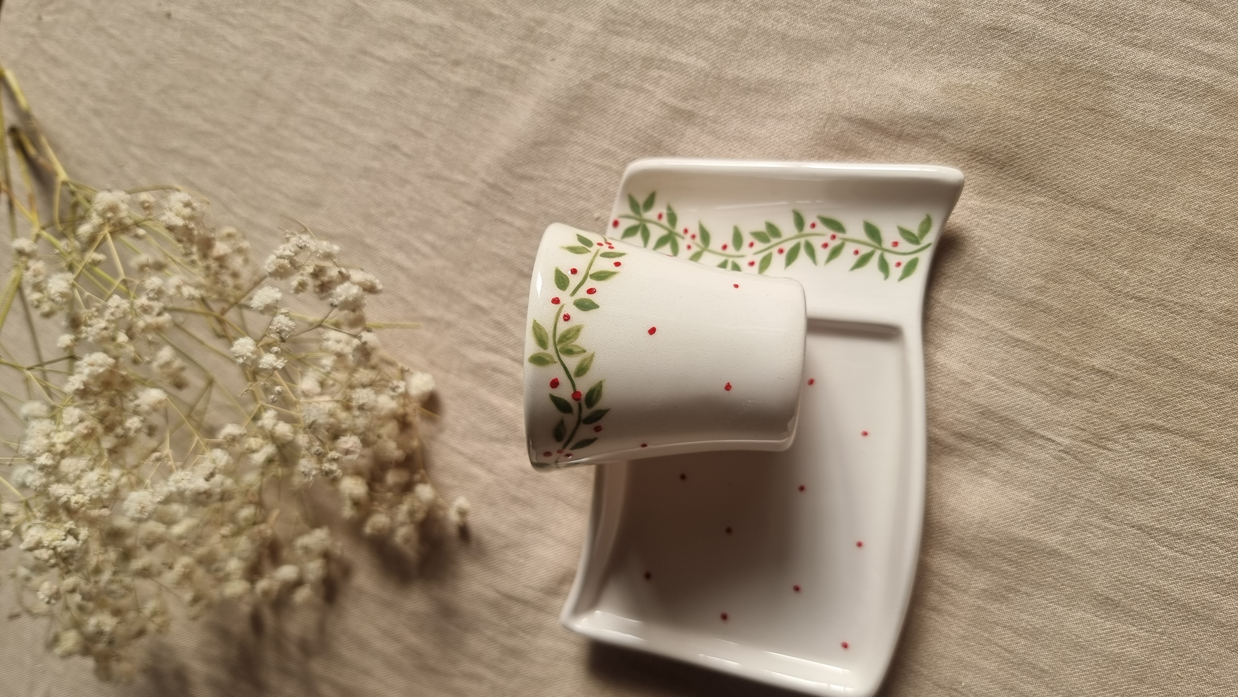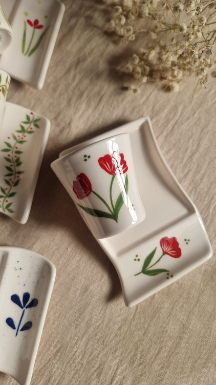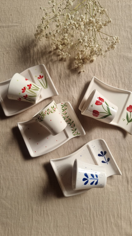شات قهوه وزیر سرامیکی طرح گل دست ساز