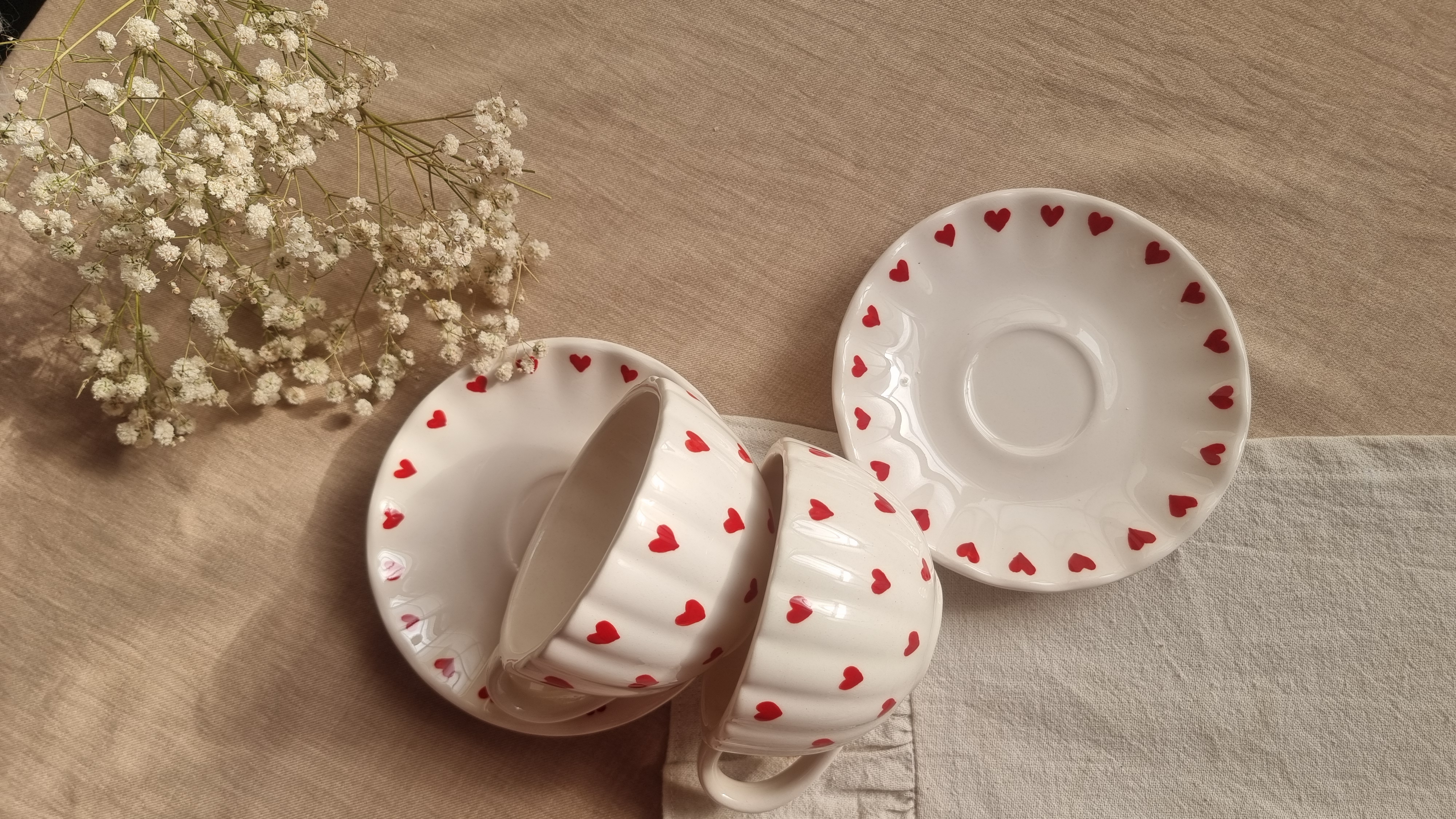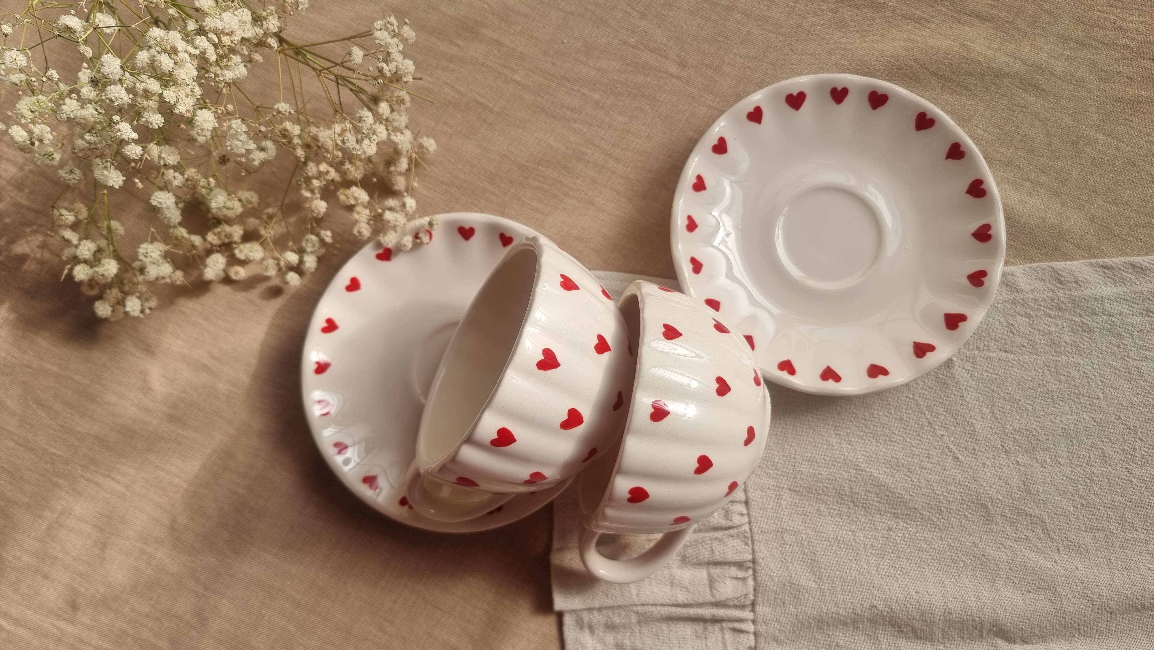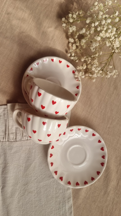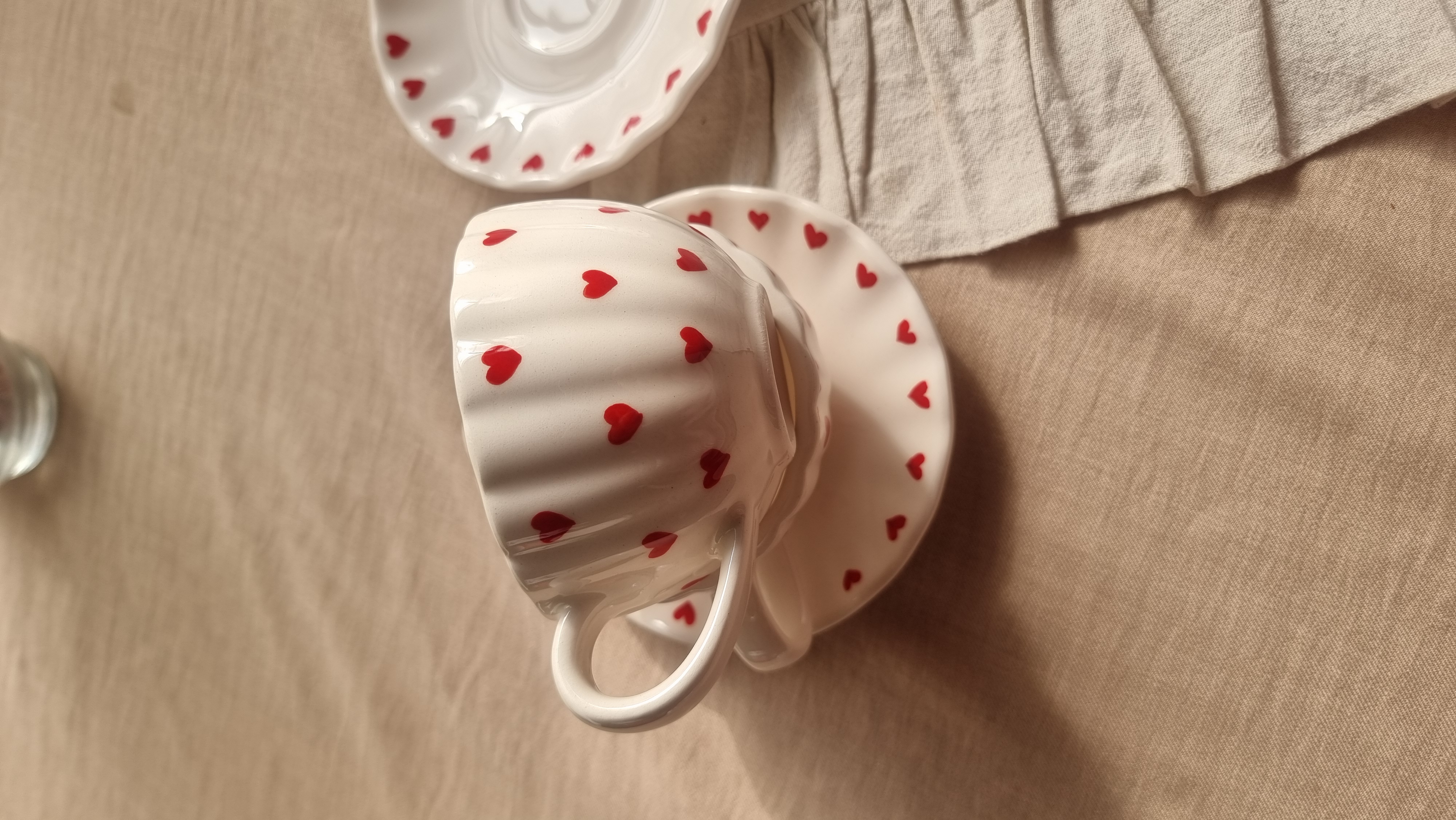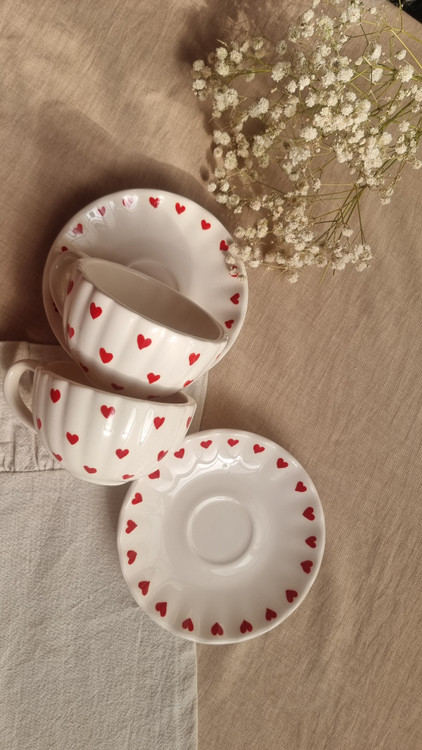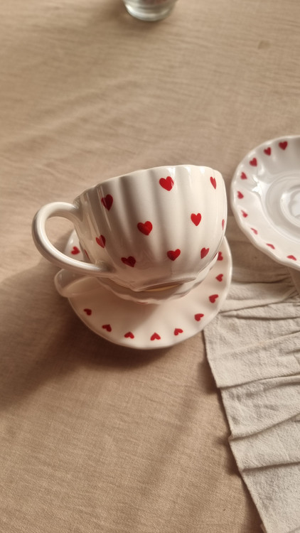 فنجان و زیر سرامیکی با نقاشی دستی و زیر لعابی